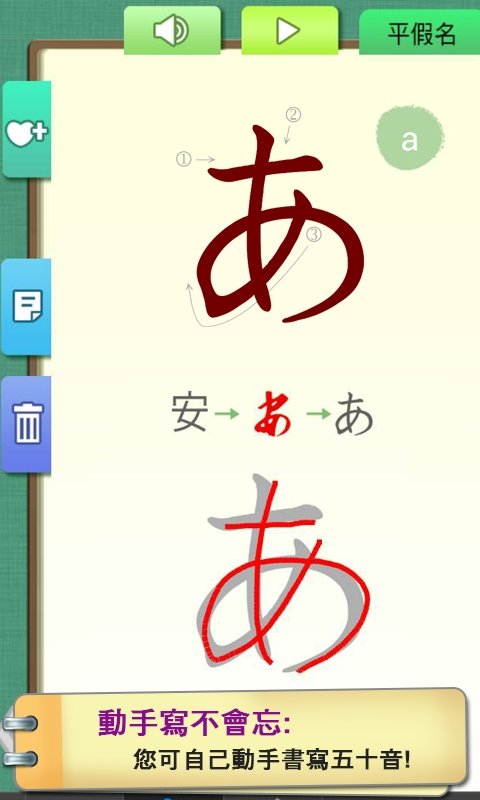 语音记忆功能:采用专业日语教师的真人发音示范,确保您从一开始就掌握最标准的日语发音。每个假名都配有清晰的发音示范和口型指导,帮助您准确掌握发音要领。