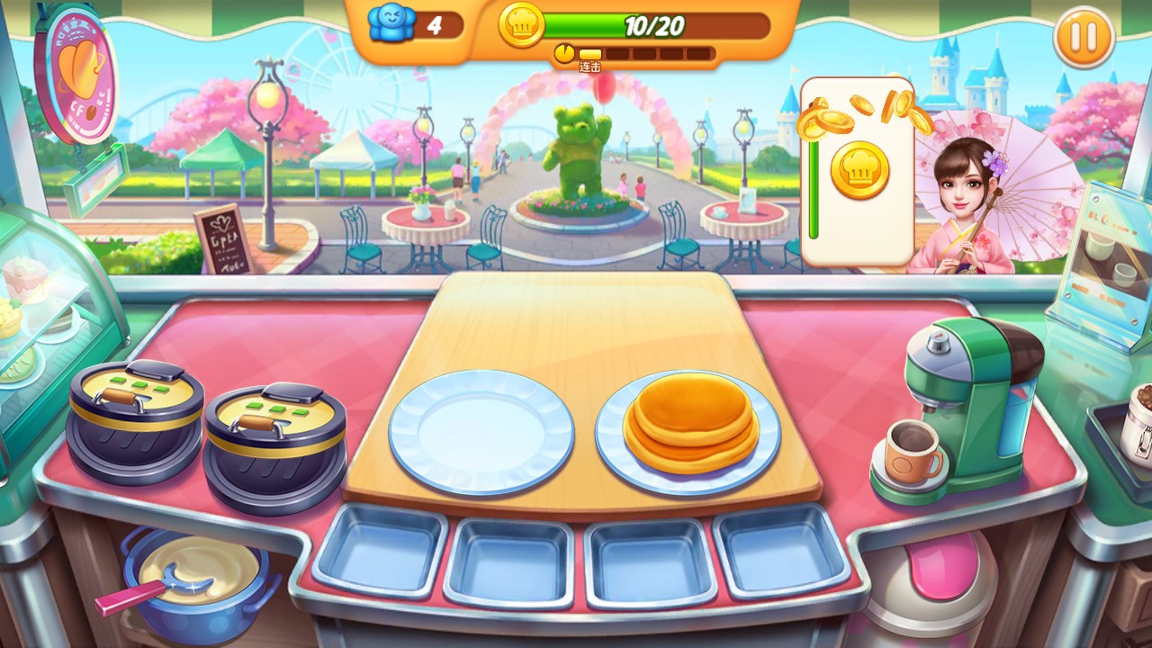 制作经典松饼时,需要先将面粉、鸡蛋等原料按比例混合,游戏会实时显示面糊的浓稠度指标。当松饼在锅中呈现金黄色泽并散发香气时,系统会通过视觉提示提醒玩家及时翻面。完美的火候控制能让松饼获得额外星级评价,为餐厅赢得更多口碑。