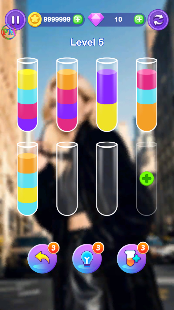 《顽趣倾注》是一款充满创意与挑战性的益智解谜游戏,巧妙融合了色彩分类与液体物理特性,为玩家带来独特的脑力激荡体验。游戏以简洁清新的界面呈现,玩家需要通过精准的倾倒操作,将混杂在玻璃杯中的彩色液体重新分类,最终让每个容器仅保留单一纯净的色彩。随着关卡深入,液体的种类和容器数量逐渐增加,玩家必须运用空间想象力和缜密规划能力,在有限的步骤内完成看似不可能的任务。这款游戏不仅能带来解谜的成就感,更能有效提升玩家的观察力与逻辑推理能力。