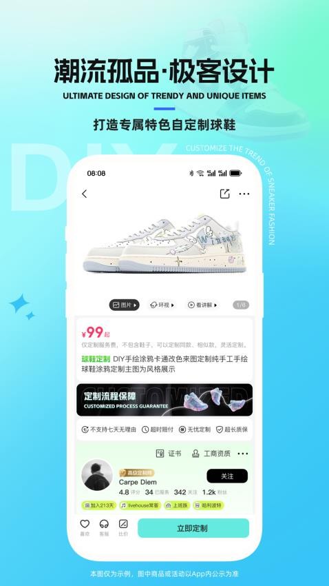 作为专业潮鞋定制平台,该应用创新性地构建了潮鞋定制+设计师推荐+案例展示+社区互动的多维服务体系,每周更新上百款原创设计。采用智能匹配算法结合用户行为分析技术,基于风格偏好、穿着场景、预算范围等多维度数据,实现个性化设计师推荐和智能定制引导,准确率高达92%。服务内容全面覆盖运动鞋、休闲鞋、板鞋、篮球鞋、潮流鞋、限量鞋等六大领域,通过系统化分类和智能检索,满足用户多样化需求,支持20多种特殊材质选择。首创全流程可视化功能,整合设计沟通、材料选择、制作进度、质量把控、售后保障等全流程服务,每个环节都配有进度提醒和客服支持,打造专业级的潮鞋定制平台。