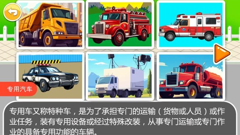 游戏通过寓教于乐的方式,让孩子在拼装各种交通工具的过程中学习相关知识。每完成一个拼图,都会出现该交通工具的简单介绍和使用场景说明。