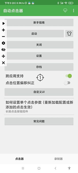找到"自动点击器",也是默认关闭的,需要开启;开启后软件图标会显示在通知栏,方便快速启动和设置。