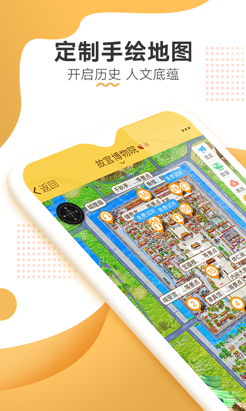 智能导航地图:完整覆盖故宫博物院250多个核心景点,采用高精度定位技术,清晰标注每个景点的具体位置,让您在偌大的紫禁城中随时掌握自身方位,再复杂的路线也不会迷失方向。