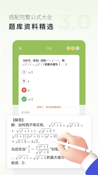 【知识点系统梳理】面对庞杂的数学知识体系不知从何下手?考神君高中数学为你完美解决这个难题!我们专业教研团队将各个基础知识点进行科学归纳,采用"一点一练"的学习模式,帮助学生循序渐进地夯实基础。同时配备完整的公式大全,系统梳理各类公式难点,配合海量题库训练,让学生在理解的基础上实现举一反三,真正做到"以不变应万变"。