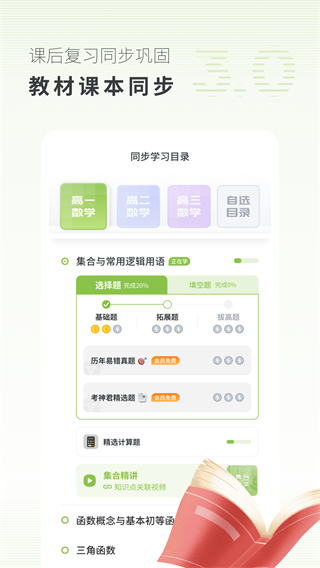 【全方位学习支持】课程内容覆盖高中三年全部数学知识点;严格同步教材进度,支持预习复习;每道习题配有视频解析,确保理解透彻;重点难点专题汇总,方便反复强化;学习数据精准记录,助力针对性提升;错题自动归类,支持专项突破。