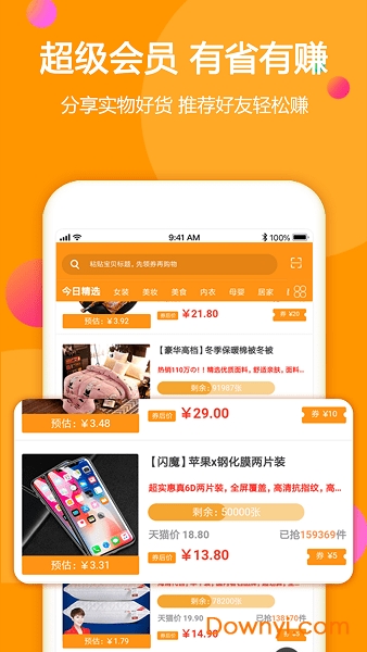 1、超级会员:新用户注册即可免费升级超级会员,自购拿返利,分享拿额外奖金,不仅省钱还赚钱。会员等级越高享受的优惠力度越大,还能参与专属会员日活动,获得限时特惠商品。