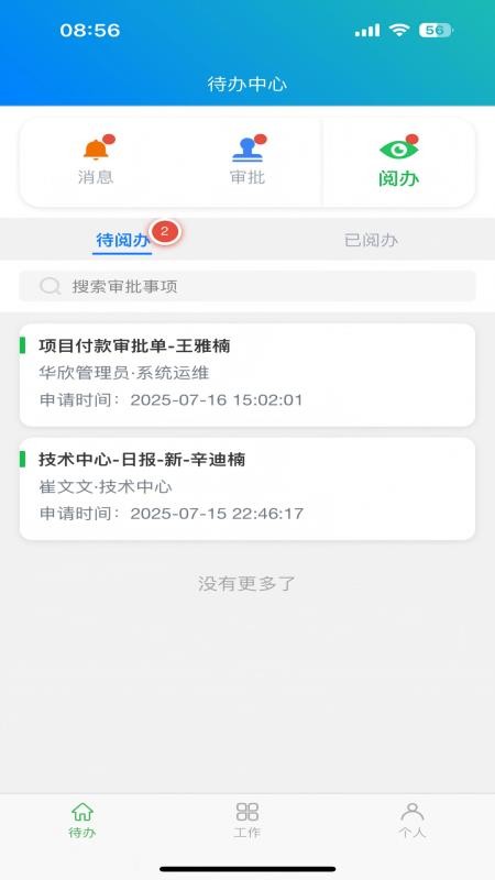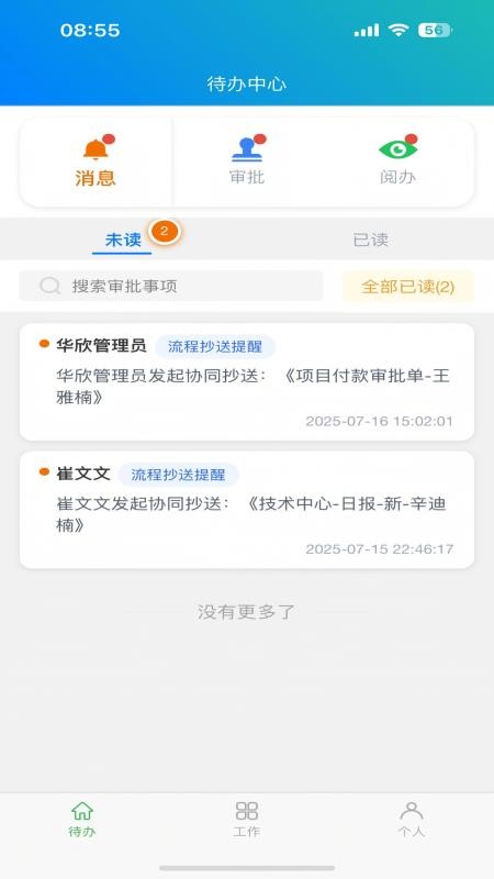 完整审批可在应用中管理,可查看所有已经阅办的工作事项;系统会自动归档已完成的工作,用户可以通过时间轴方式快速查找历史记录。