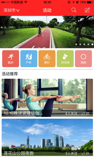 精选活动:同城活动随时走起,运动达人随时约起,向无聊的周末说拜拜吧!向孤单的自己挥手致敬吧!告别一个人运动,就是这么简单;无论是羽毛球局、夜跑小队还是瑜伽课程,约汗都能帮你找到最适合的活动,让你的生活充满活力。
