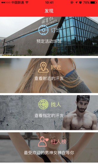 探索发现:领家小妹,长腿欧巴,运动达人,你离他们只差一个约字;通过智能匹配系统,约汗能帮你找到与你兴趣相投的运动伙伴,让每一次相遇都充满惊喜。