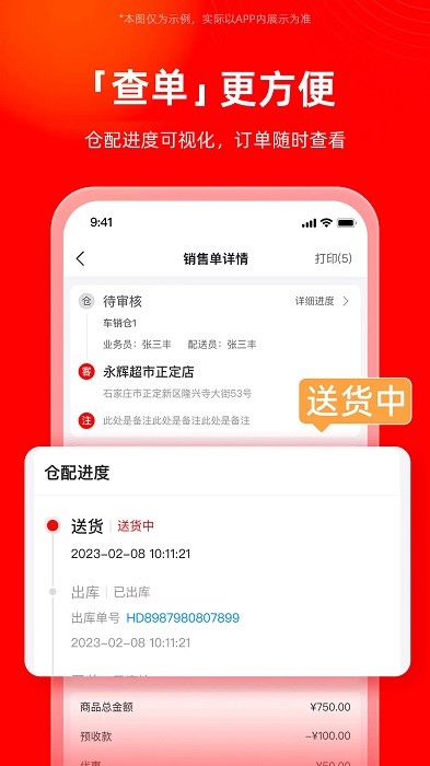 「查单」可视化追踪:通过图形化界面直观展示订单配送进度,支持订单状态的实时查询和历史追溯,让物流管理更加透明。