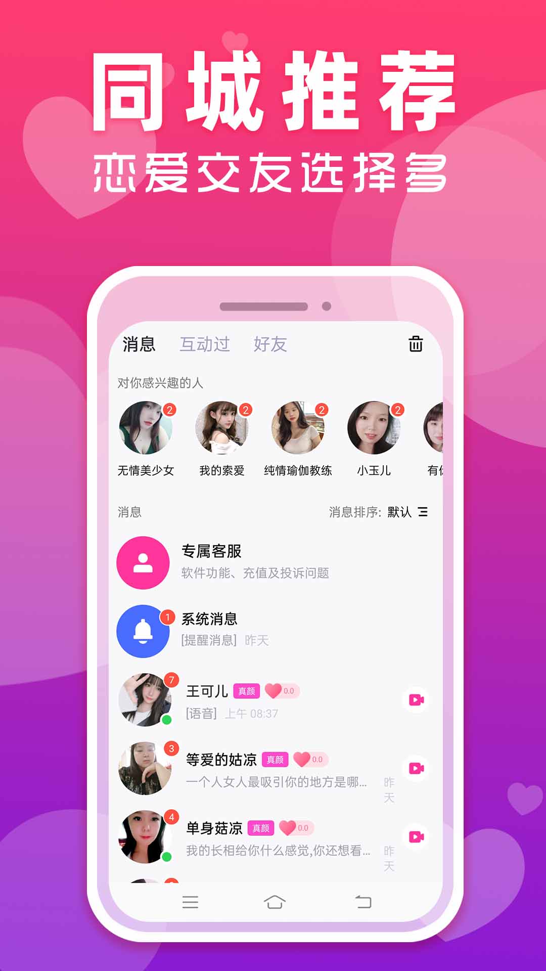 应用支持个性化设置,用户可以通过完善个人资料和设置兴趣标签,让系统更精准地推荐匹配对象。智能算法会根据用户的偏好和行为习惯,持续优化推荐结果,提升交友成功率。