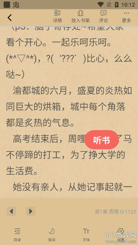 在阅读页面点击"听书"按钮即可开启语音朗读功能,系统会自动将文字内容转化为流畅的语音。您可以根据个人喜好调节语速快慢,选择男声或女声朗读。听书过程中支持后台播放,即使锁屏也能继续收听,非常适合通勤、运动或做家务时使用。遇到精彩段落,还可以随时切换回阅读模式,两种方式随心切换。