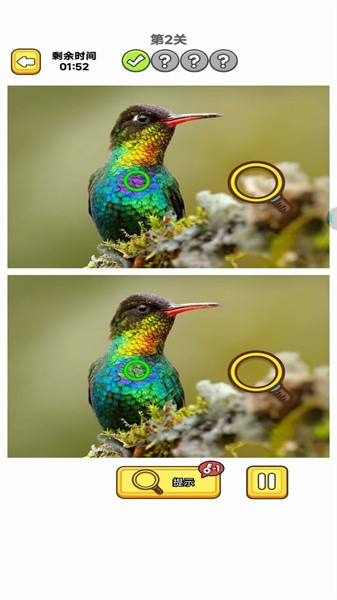 游戏采用直观的触控操作,玩家只需用指尖在屏幕上画圈即可标记发现的差异,这种人性化的设计让查找过程变得轻松便捷。游戏贴心地设置了多种难度模式,初级模式适合新手玩家熟悉规则,高级模式则能为资深玩家提供更具挑战性的体验。如果遇到特别困难的关卡,玩家可以选择暂时跳过,待能力提升后再回来挑战,这种灵活的设定让游戏体验更加人性化。每个关卡都经过精心设计,差异点的设置既考验眼力又充满趣味性,让玩家在解谜过程中获得满满的成就感。
