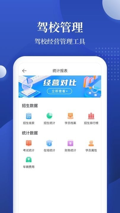 驾校管理模块实现了从学员报名到毕业的全流程数字化管理,所有数据实时更新,管理者可以随时查看各项关键指标。