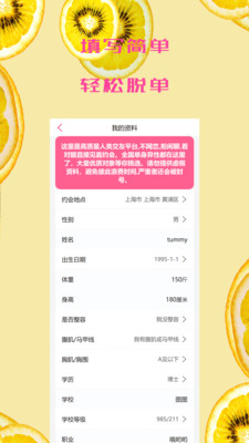 真实、完整的信息。展示你自己,突破你的个性!用户可以完善个人资料,增加匹配成功率。