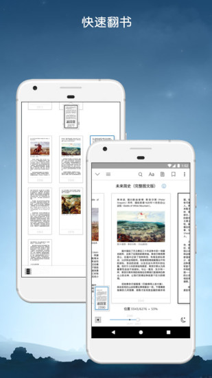 "快速翻书"和"鸟瞰视图"提升了页面导航体验,书籍秒翻。新增滑动条快速定位功能,长按滑动条可精确跳转到指定章节。