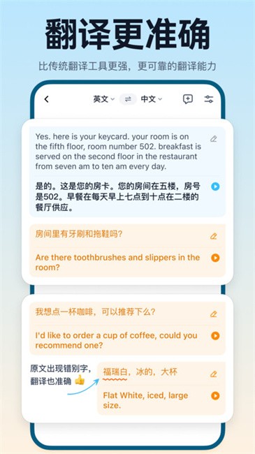 翻译鸥最新版本带来了多项实用功能升级。对话翻译功能支持实时语音互译,让跨语言交流变得轻松自如;同声传译模式可以实现即时语音翻译,适合会议、演讲等场景;图片翻译功能可以识别并翻译图片中的文字内容,方便用户理解外文资料;翻译历史记录功能让用户随时查看过往翻译内容,并支持恢复对话;上下文关联翻译功能能够根据前后语境提供更准确的翻译结果;最新加入的视频翻译功能更是突破性创新,支持为视频一键生成双语字幕,极大提升了观看外语视频的体验。