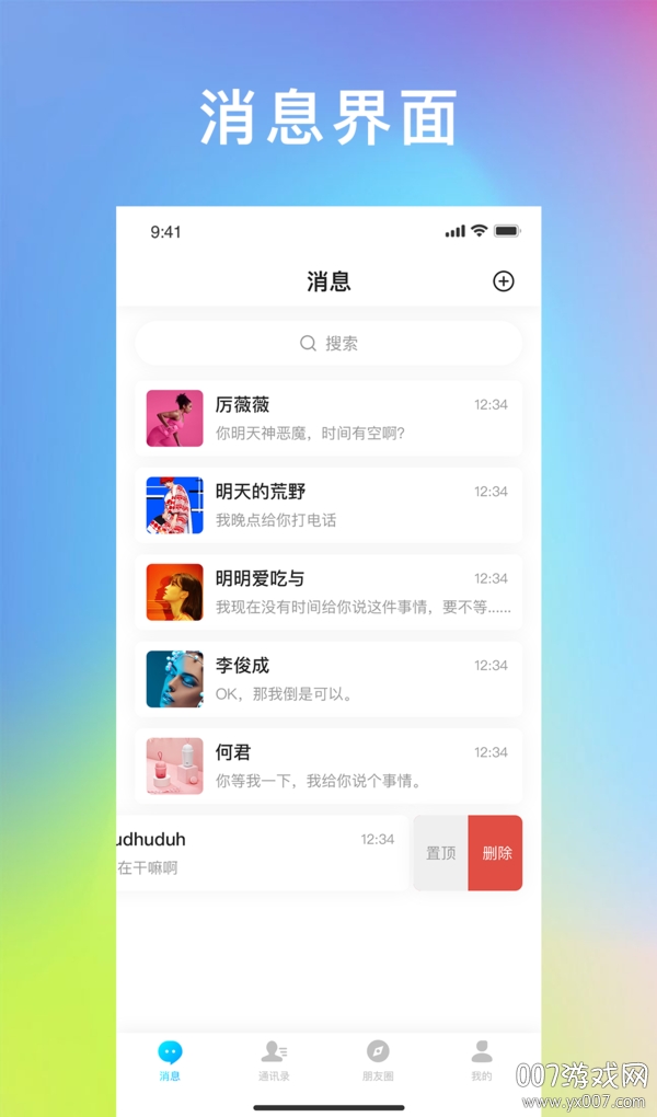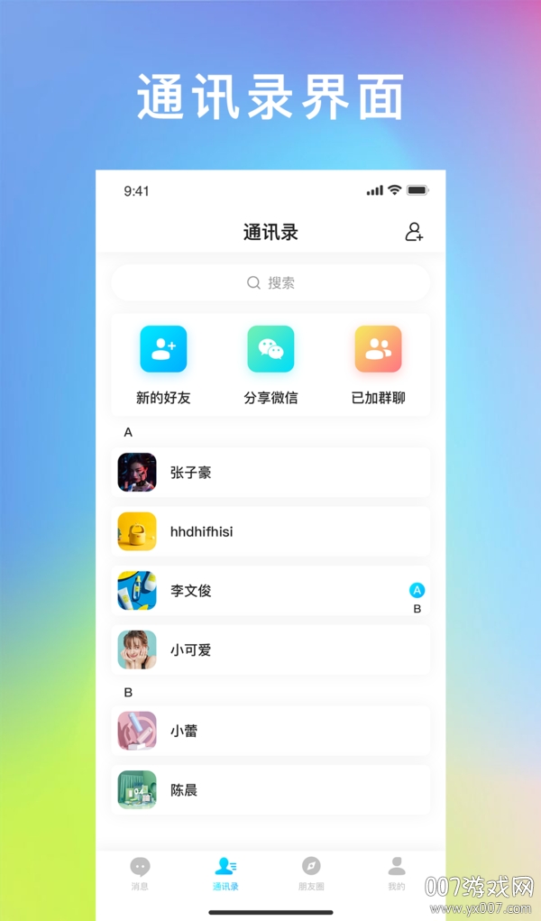 飞讯IM即时通讯畅聊版提供了多项实用功能,让用户的沟通体验更加流畅。用户可以通过输入对方的手机号快速检索并添加新朋友,系统会智能推荐可能认识的好友,帮助用户拓展社交网络。软件支持一键查找好友功能,发送好友申请后,对方同意即可建立联系。此外,用户可以在线上查看好友的联系方式,随时发送消息或进行语音视频通话。软件还配备了消息中心功能,方便用户查看和管理与好友的聊天记录,重要信息一目了然。