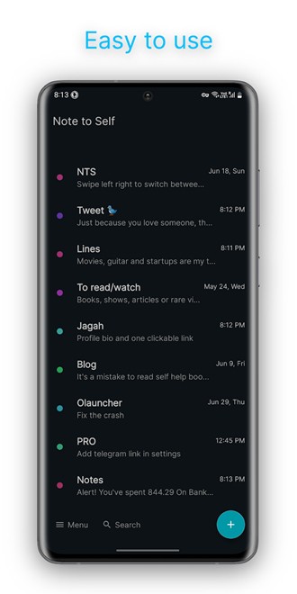 NotetoSelf是一款荣获2022年最佳应用称号的创新型笔记软件,它以独特的聊天式交互界面和全面的隐私保护功能重新定义了移动端笔记体验。作为一款完全离线运行的应用程序,NotetoSelf彻底消除了云端存储可能带来的数据泄露风险,让您的所有笔记内容都安全保存在本地设备中。虽然官方版本需要付费解锁专业功能,但今天我们为大家带来的是已破解的版本,您可以免费享受所有高级功能,包括多媒体附件支持、生物识别加密等完整特性。