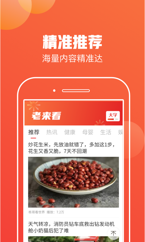老来看大字版app是一款专为中老年用户量身定制的手机应用软件,致力于为退休人群提供全方位的数字生活服务。作为国内领先的适老化信息服务平台,我们整合了海量优质内容资源,涵盖新闻资讯、社区互动、视频直播、健康管理等多个领域,让您足不出户就能享受丰富多彩的退休生活。