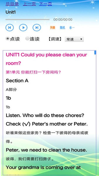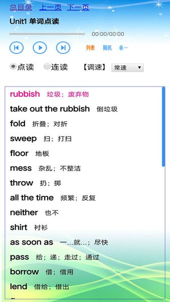 本软件采用纯正美式发音和英式发音双语音环境,完全按照教材体系精心编排,确保与课堂教学进度保持同步。所有学习素材均来自官方教材,保证内容的权威性和准确性。软件支持多种朗读模式,包括循环朗读、连续听读、单句复读等,满足不同学习场景的需求。特别值得一提的是,该app采用单机运行模式,在安卓手机或平板上安装后即可离线使用,无需担心网络问题。无论是在家中、车上,还是睡前、饭后等碎片时间,都能随时打开学习,真正做到随时随地提升英语水平。