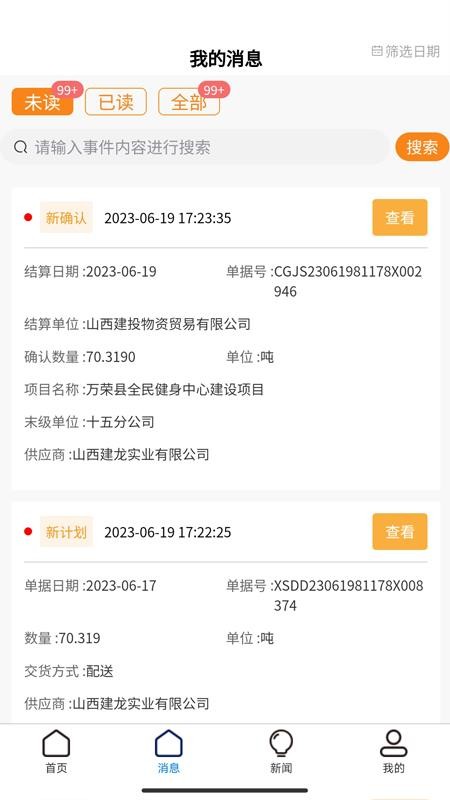 建投物链app不仅专注于业务管理,还为用户提供了丰富的新闻资讯功能。用户可以随时查阅行业要闻和公司动态,掌握最新的市场信息。平台会实时更新资讯内容,确保用户获取到最前沿的行业动态。同时,软件还配备了消息中心功能,方便用户查看未读消息并及时回复,确保沟通无障碍。无论是业务通知还是系统提醒,用户都能第一时间掌握,避免遗漏重要信息。