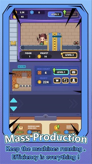 游戏每天都会提供丰富多样的任务挑战,让玩家在自由探索的同时获得丰厚奖励。高科技装备系统可以帮助玩家更高效地完成任务,而员工招募系统则让生产管理更加灵活多变。玩家可以全面升级工厂的每个细节,从建筑外观到生产设备,都能进行个性化改造,打造独一无二的工厂王国。