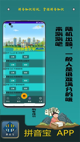 拼音水平测试:智能出题系统可根据用户水平自动生成测试题,涵盖拼音分类、发音、音标等全方位考核;