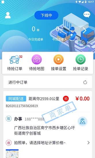 海量同城配送订单资源库,涵盖餐饮、商超、文件等多种类型,用户可根据自身情况自由选择合适订单。智能派单系统会根据用户等级和评价,自动分配优质配送任务,并通过即时提醒确保不错过任何机会。高效的一键抢单功能让用户只需简单操作就能快速锁定心仪订单,抢单成功率完全取决于用户响应速度。完善的订单管理系统支持通过编号查询订单详情,所有接单记录都会自动保存,方便用户随时查看历史业绩。