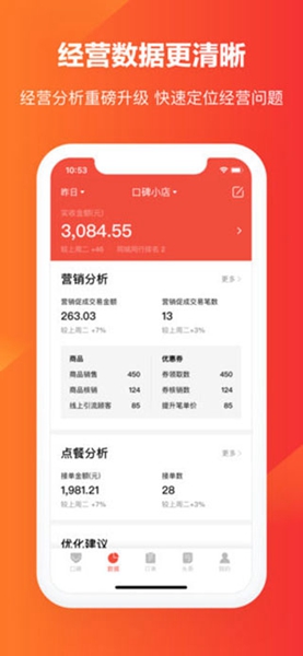 经营诊断:提供专业的经营分析报告,从客单价、翻台率等多维度给出优化建议。