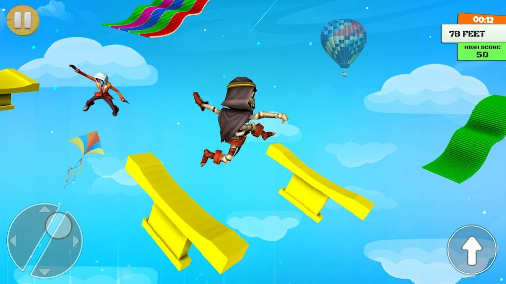 游戏提供了多位个性鲜明的跳跃角色,每个角色都拥有独特的背景故事和特殊技能,玩家可以根据自己的喜好选择最适合的挑战者。操作方式简单直观,新手也能快速上手,但想要精通各种高难度技巧则需要不断练习。游戏中的天空场景美轮美奂,白云、飞鸟、彩虹等元素共同构成了一幅令人心旷神怡的空中画卷。