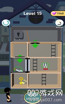 房间和盗贼全广告畅玩版是一款充满挑战与乐趣的益智冒险游戏。在这款游戏中,玩家将化身为一名身手敏捷的盗贼,目标是在限定时间内潜入各个精心设计的房间,寻找并带走珍贵的金银财宝。游戏不仅考验玩家的反应能力,更需要巧妙运用智慧来破解各种机关和障碍。每个房间都暗藏玄机,玩家必须仔细观察环境,合理规划行动路线,才能在主人回来前安全撤离。随着游戏进程的推进,楼层会越来越高,难度也会不断提升,带来持续的新鲜感和挑战性。