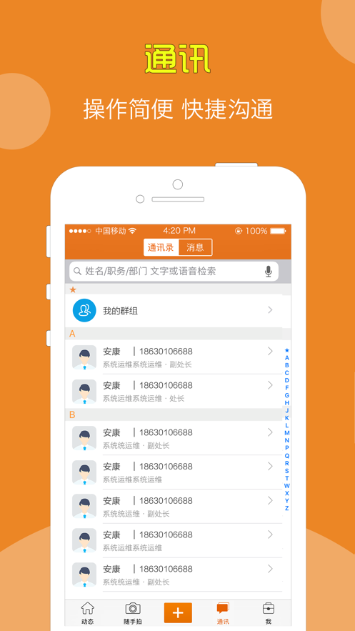 同事管理功能:应用内置完整的同事通讯录,所有企业员工信息一目了然。通过智能搜索功能,用户可以快速找到任何一位同事的联系方式,大大提高了沟通效率。
