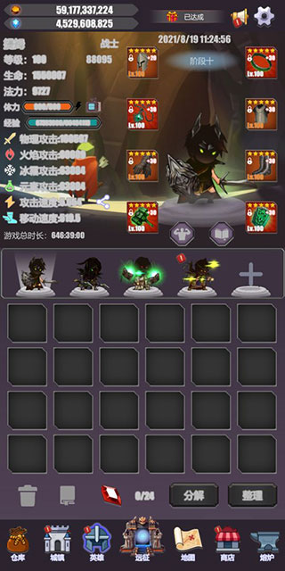 【城镇】:这里是游戏的核心功能区,提供成就系统、拍卖行、邮箱、每日签到等常用功能入口。玩家可以在这里领取每日奖励,与其他玩家进行装备交易,查看游戏进度和成就。城镇中还设有训练场,玩家可以测试英雄的战斗力。