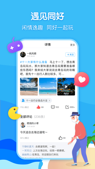 闲趣岛app不仅是一个社交平台,更是中老年人展示自我、学习成长、结交朋友的温暖家园。在这里,年龄不是障碍,兴趣才是纽带,每位用户都能找到属于自己的快乐天地。快来加入闲趣岛,开启精彩的社交新生活!