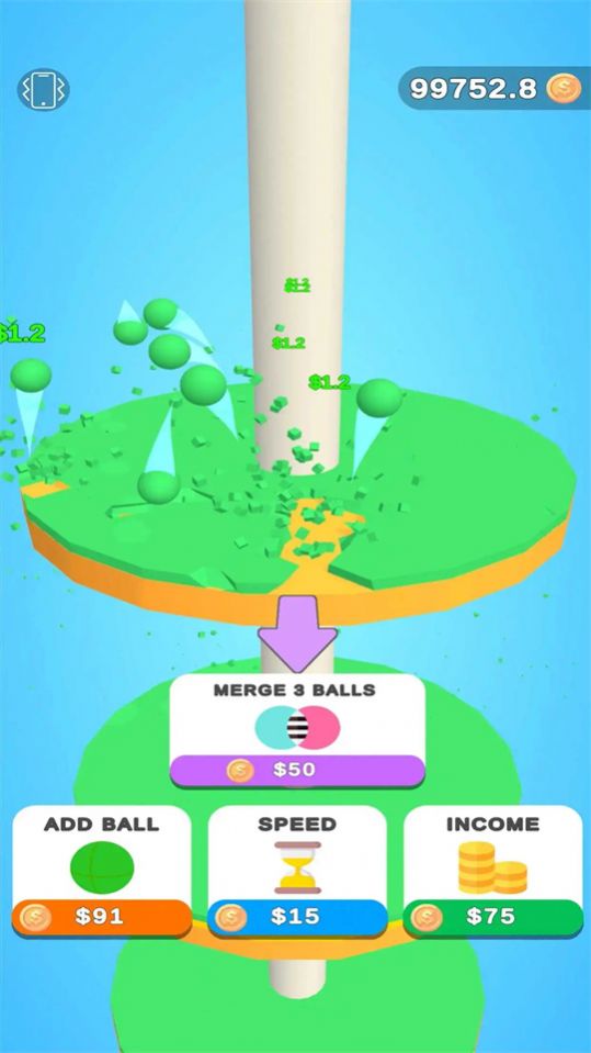 游戏初期建议先点击收益提升按钮,这样可以快速积累初始资源。随着游戏进程,适当增加小球数量能显著提升破坏效果。当积攒到足够金币时,三球合并功能将成为关键,它能大幅提升单个小球的冲击力。在操作过程中,要特别注意引导强化后的小球精准撞击目标圆盘,这样才能获取丰厚的金币奖励。游戏后期需要建立高效的资源循环,通过合理分配升级资源,在速度、控制和破坏力之间找到最佳平衡点,这样才能持续提升通关效率。