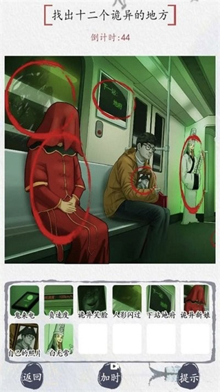 这款游戏完美融合了解谜冒险与恐怖元素,带来既刺激又烧脑的游戏体验。游戏采用了阴森诡异的背景音乐,搭配精心设计的音效,营造出令人毛骨悚然的紧张氛围。游戏画面以暗色调为主,配合细腻的光影效果和惊悚的美术风格,进一步强化了恐怖感。此外,游戏提供了数十个风格迥异的场景,每个场景都隐藏着独特的差异点等待玩家发掘,确保游戏内容始终充满新鲜感。