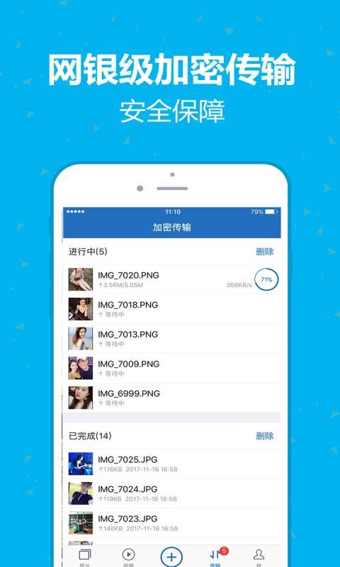 照片自动备份功能让您高枕无忧。手机丢失了?完全不用担心!系统会自动将您手机中的照片和视频快速备份到云端,确保珍贵回忆永不丢失。采用银行级别的加密传输技术,所有上传的照片都经过严格加密处理,任何人都无法查看您的私密内容,让您上传时完全放心。
