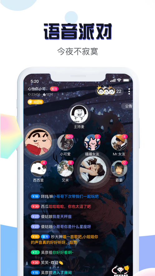 语音派对:萝莉,大叔,青叔,声控必备,总有一款solo打动你,每周更新主题派对,让你体验不同风格的声线魅力