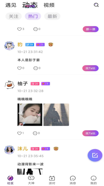 强大的速度匹配功能,基本上任何时候都不会无聊。系统能在3秒内为你推荐合适的聊天对象;每个人的账号都经过验证,可信,互动安心。平台采用人脸识别+身份证双重验证机制;海量的话题展示,我们什么都可以说,没有什么可避免的!每日更新热门话题,让你轻松找到聊天切入点。