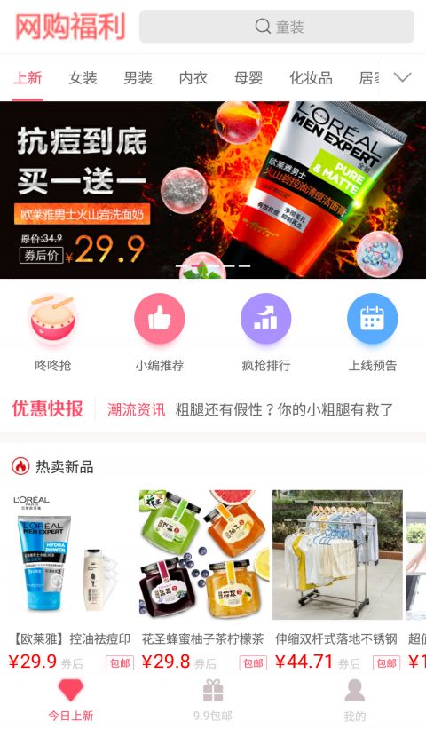 网购福利每天都会更新上千款特价优惠商品,包括大量九块九包邮商品和一元秒杀商品。我们与各大品牌商家深度合作,提供独家优惠券,让您在直接打折促销的基础上还能叠加使用优惠券,比市面上其他折扣商城更省钱。无论是日常用品还是大牌商品,都能在这里找到最优惠的价格,是您网购省钱的必备神器。