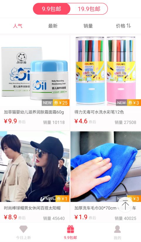 9.9包邮专场——人工精选各类生活必需品和时尚单品,价格低至1元还包邮,让您花小钱买好货。
