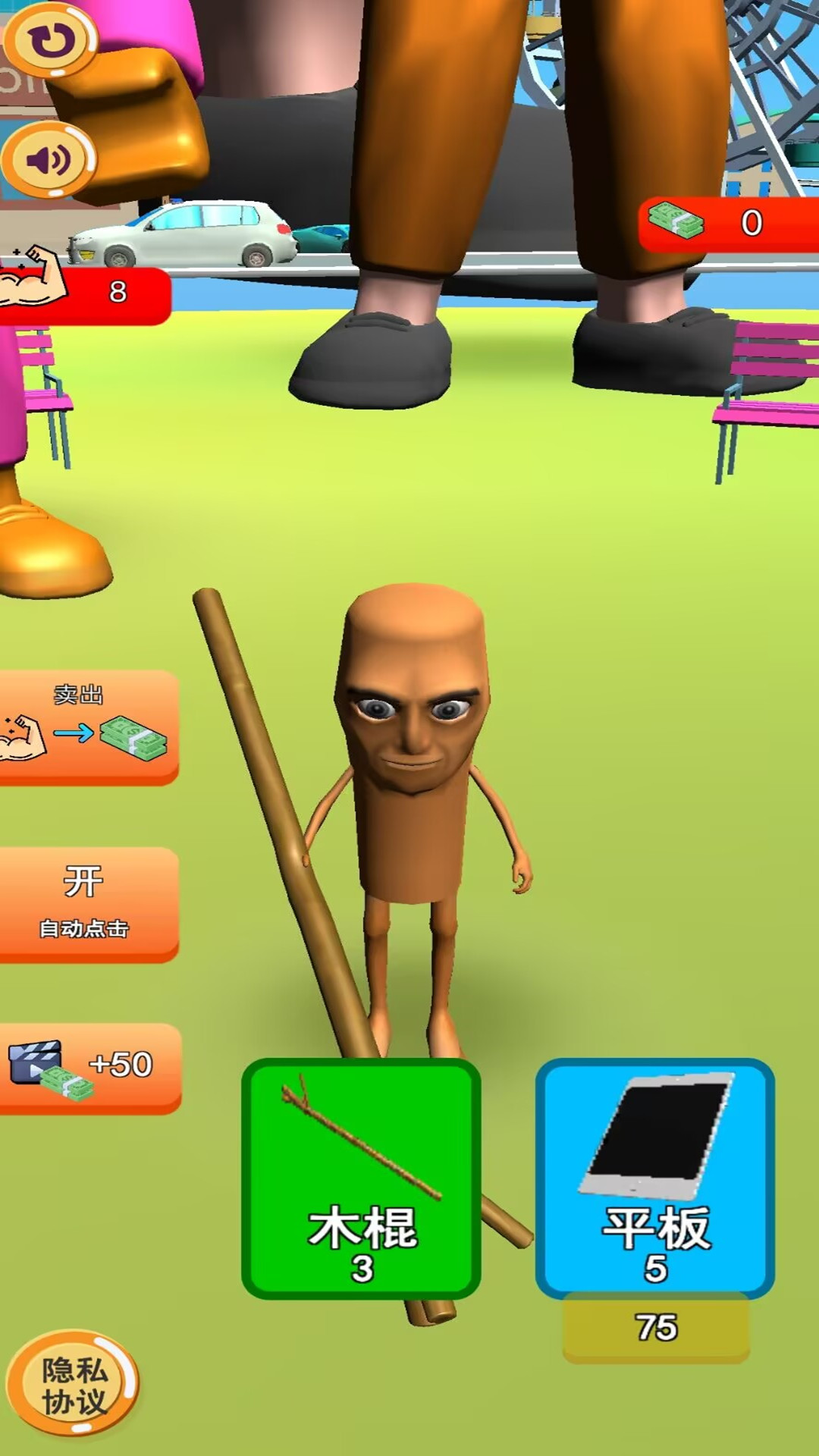 有钱了之后我们可以解锁更加高级的健身工具,比如木棍,使用木棍可以获得的肌肉值当然会更高。随着装备升级,训练效果会显著提升,加速角色成长。