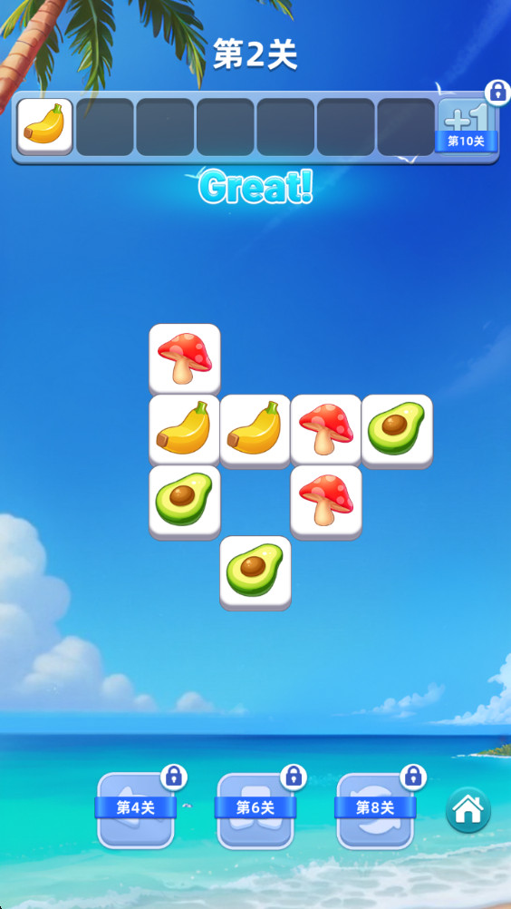 游戏需要把所有的瓷砖合并消除。随着关卡推进,消除难度会逐渐增加,玩家需要开动脑筋,合理利用有限步数完成挑战,同时还要注意特殊瓷砖的分布位置。