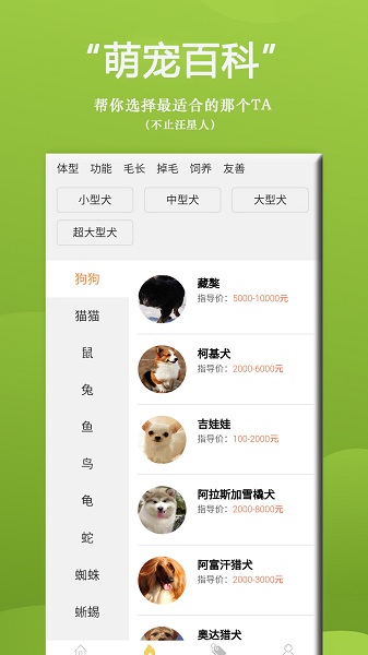 数据库涵盖80多个犬种的详细档案,包括起源历史、性格特点、易患疾病等全方位信息。独创的"品种匹配度测试"能根据用户生活方式推荐最适合饲养的犬种。每月更新的养护日历会提前提醒疫苗接种、驱虫等重要事项,支持自定义添加个性化备忘事项。