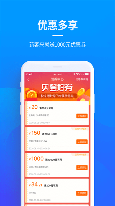 新注册用户可领取1000元专属优惠券,用于首单采购。平台每周推出品牌专场活动,每月举办大型促销,更有不定期的限时秒杀、满减优惠等活动。所有促销商品均经过严格审核,确保价格真实优惠。