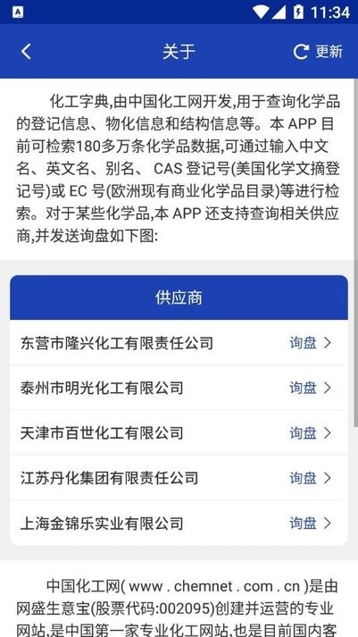 化工字典最新版具备多项实用功能,满足用户多样化的查询需求。首先,软件支持多语言自由切换,方便不同语言背景的用户使用。其次,用户可以通过APP查询化学品的供应商详细信息,包括企业名称、联系方式等,为采购和合作提供便利。此外,软件还提供产品询盘功能,用户可以直接在APP内与企业联系,获取更多产品信息。最重要的是,化工字典详细展示了化学品的分子式、分子量以及结构数据,帮助用户深入了解化学品的特性。