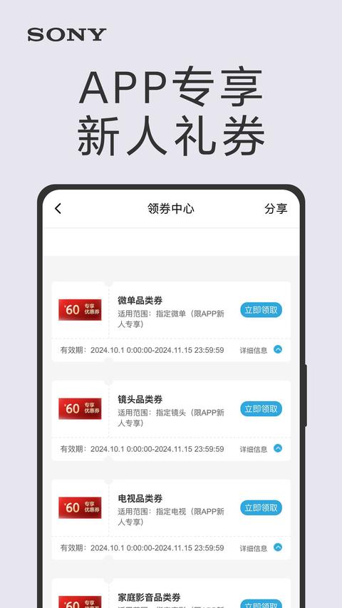 索尼会员功能:一站式会员中心整合所有权益,包括积分兑换、优惠券管理、会员专享活动报名等。支持个性化设置,让每位用户都能获得量身定制的会员体验。