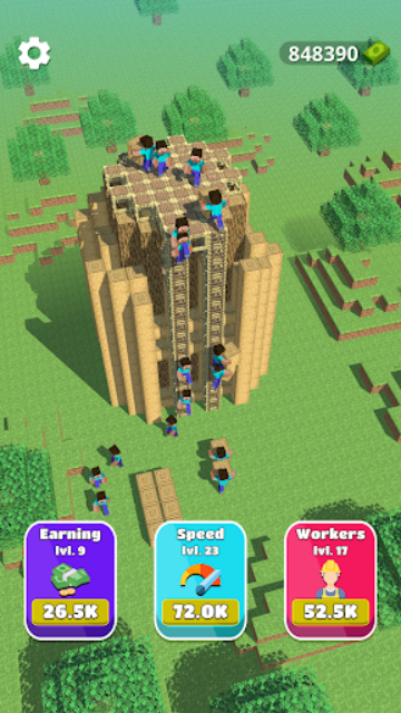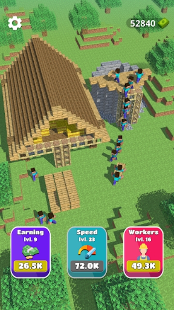 游戏开始时,玩家需要从基础建设做起,雇佣少量工人来搬运建筑材料。通过点击屏幕可以指挥工人加速工作,提升建造进度。随着资金的积累,玩家可以扩大团队规模,雇佣更多工人,或者升级工人的技能,提高他们的工作效率。