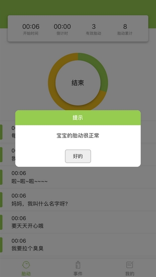 如果你感受到胎动了,就点击【动一下】。软件会通过震动反馈确认操作成功,同时记录下精确到秒的时间戳,确保数据可靠性。